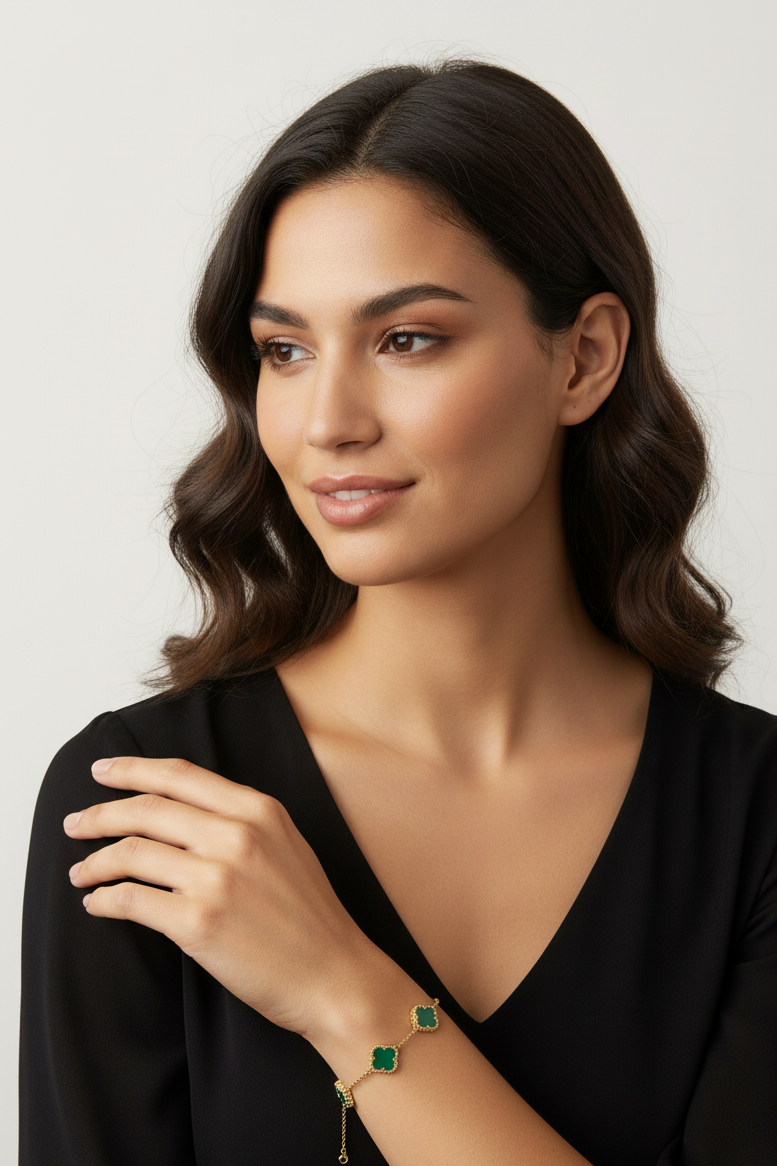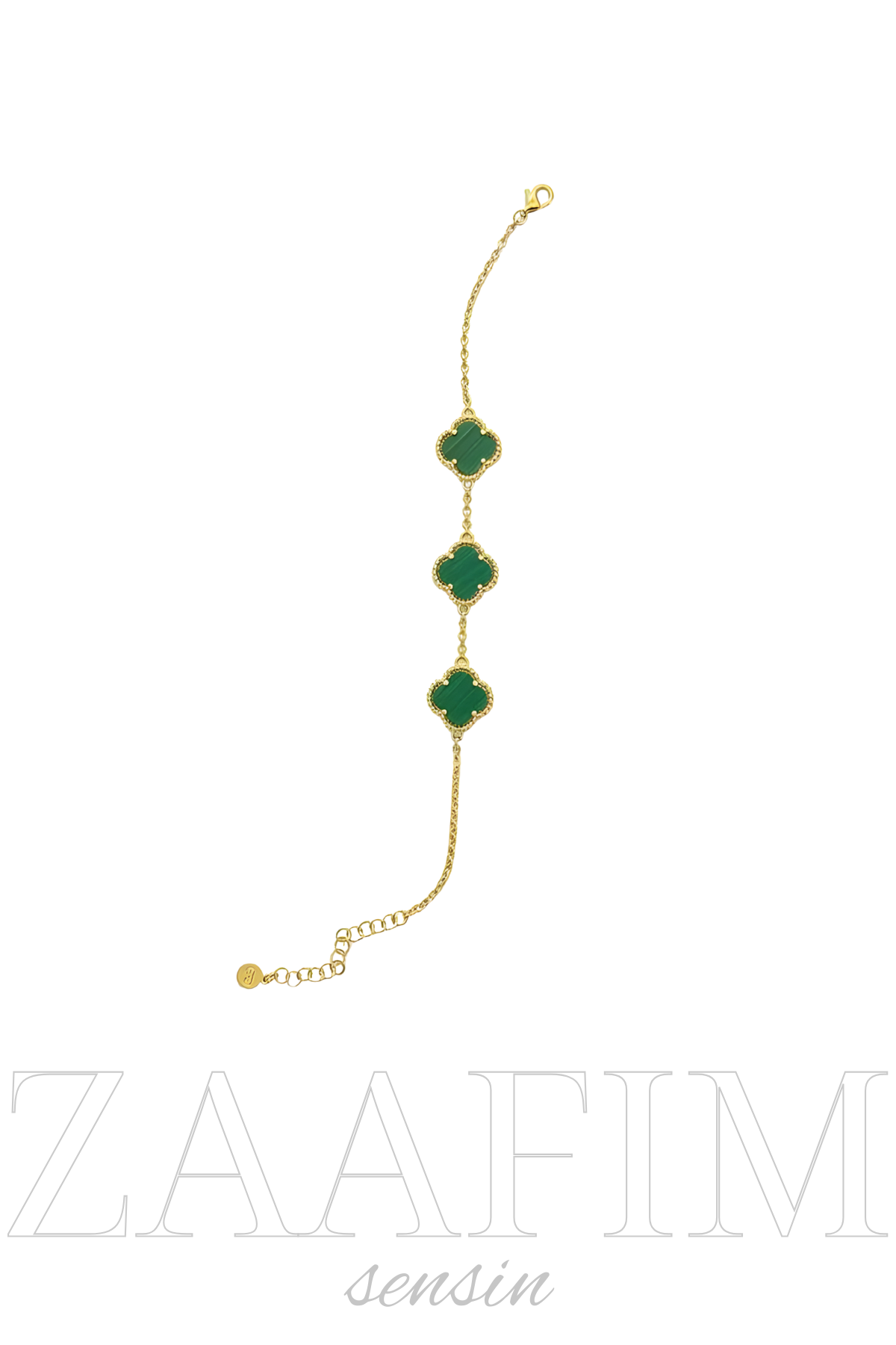 925 Ayar Gümüş 18 Ayar Gold Kaplama 3 Taşlı Yonca Kadın Bileklik