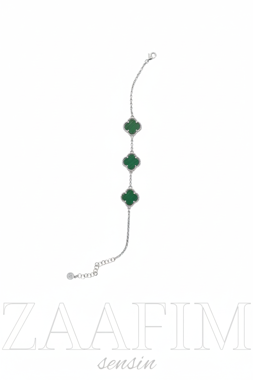 925 Ayar Gümüş 3 Taşlı Yonca Kadın Bileklik
