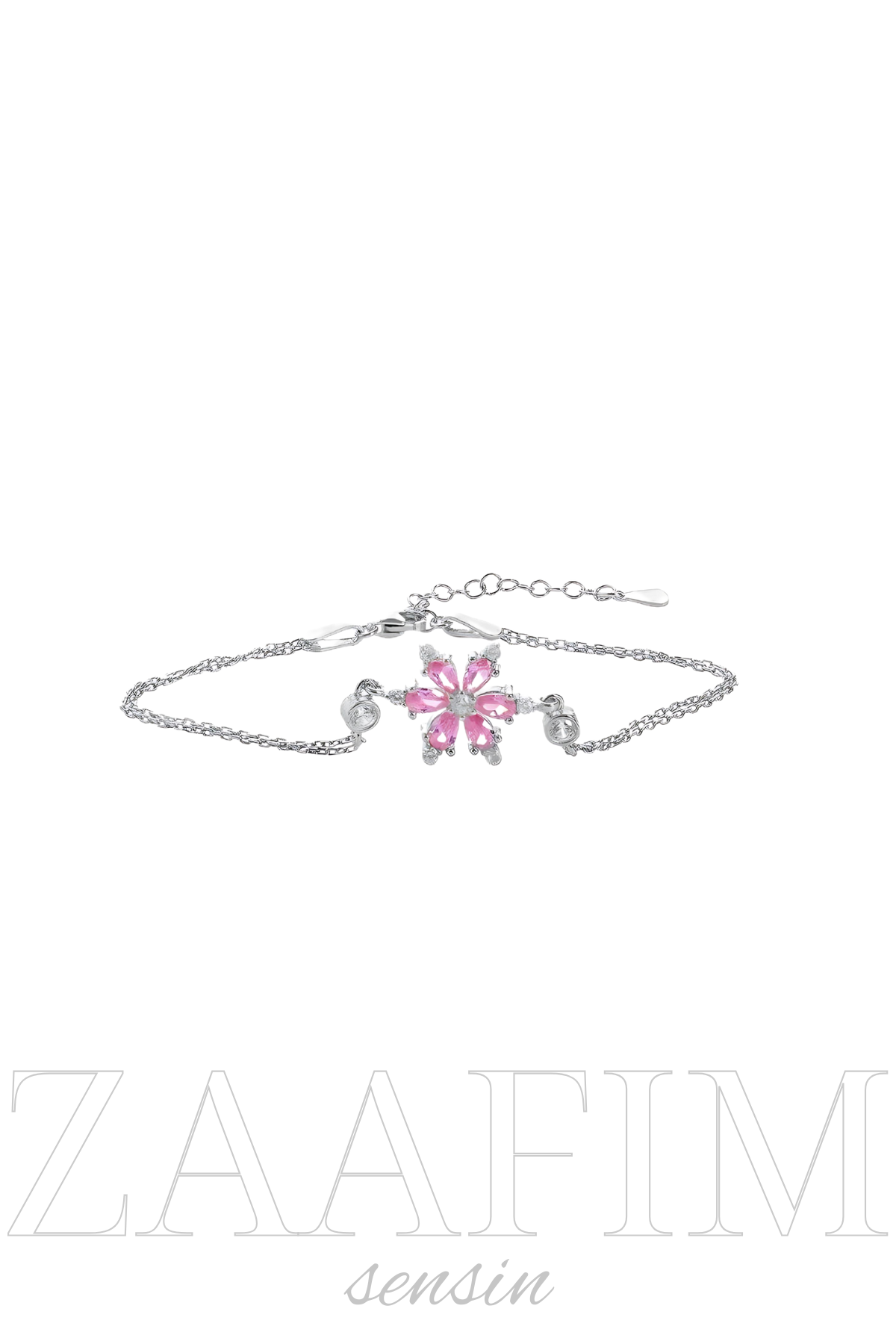 925 Ayar Gümüş Kadın Pembe Lotus Çiçeği Bileklik