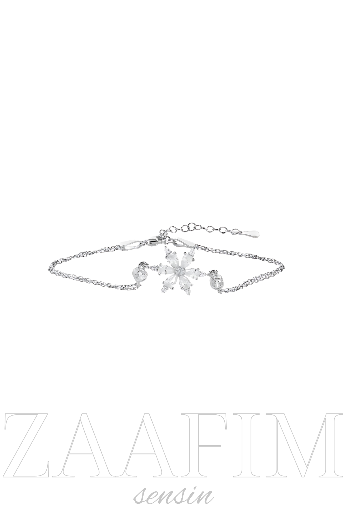 925 Ayar Gümüş Kadın Zirkon Lotus Çiçeği Bileklik