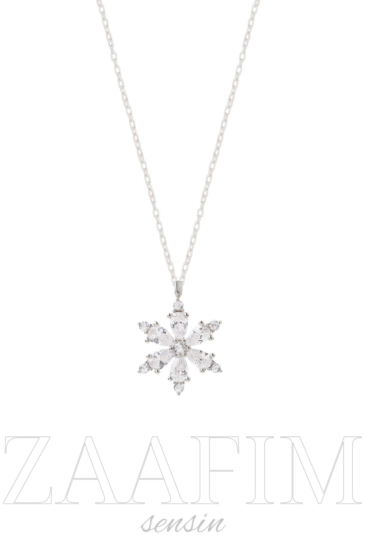 925 Ayar Gümüş Kadın Zirkon Lotus Çiçeği Kolye